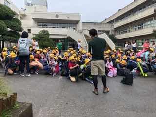 クラスごとに分かれて、ガイドさんの説明を聞いています!
