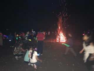 火之神に手を振っています!後ろで一般の方も手を振っています(笑)