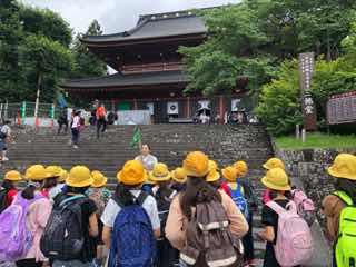 クラスごとに分かれて、ガイドさんの説明を聞いています!