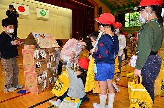 今日の午前中、体育館で2年生が遊びランドを開きました。