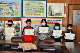 朝会がもてない状況なので、読書感想文を書いた5名の児童の表彰を