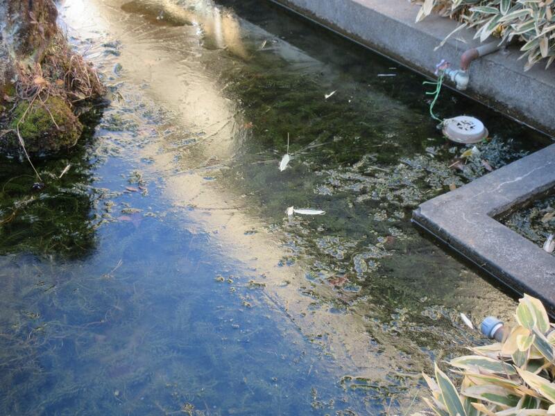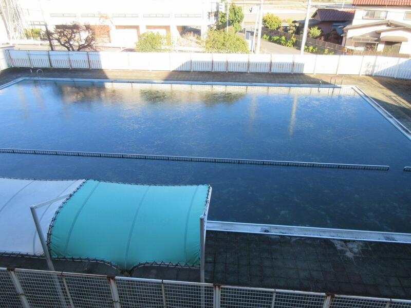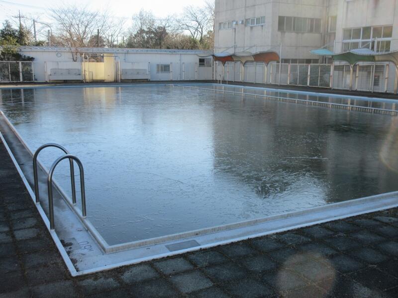 中庭やプールの水が凍っていました。今シーズン初めてです。