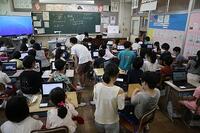 一人一台貸与されているタブレットに、新しいソフトが導入されました。そのため、教職員が事前に研修を行いました。