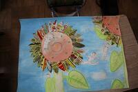 1年生は「むしとなかよし」という題材で、自分の好きな虫と楽しく活動してることを表現しています。