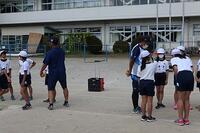 ライオンズアカデミーから、星野智樹コーチと高橋朋己コーチが来校し、5年生を対象に投げる・捕る練習と野球型ゲームを教えてくださいました。