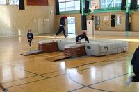 初めての跳び箱の学習ですが、楽しそうに取り組んでいます。上手に跳び越せる子も多くいます。