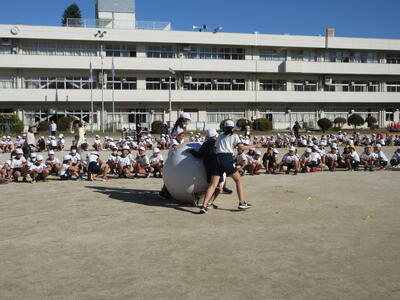 自分たちの大玉がゴールすると嬉しそうに飛び上がって喜んでいました。
