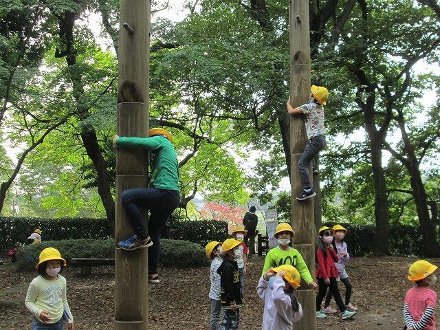 アスレチックでは、どんぐり拾いをした後、遊具でもたくさん遊びました。