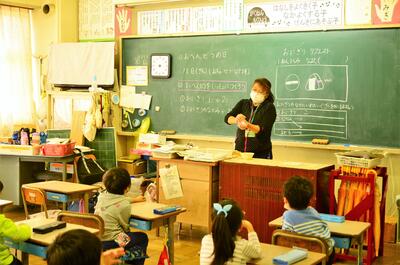 1年生にとって初めての取り組みなので、おにぎりの作り方の勉強をしました。