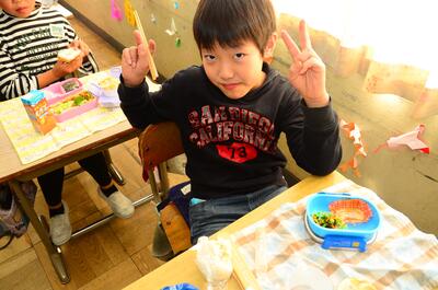 朝から早くお弁当の時間にならないかなとニコニコしていました。