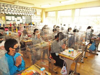 各クラスで「翼をください」を歌っている様子を放送しました。