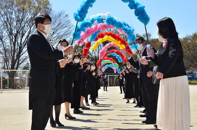 【在校生に拍手で見送られる卒業生のみなさん】