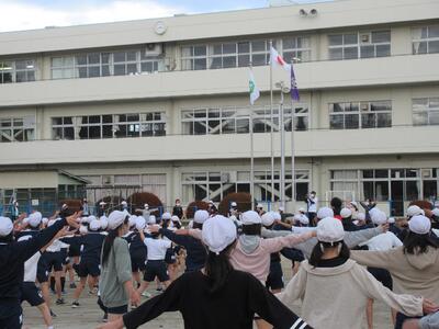 集会委員の児童を中心として、「後だし体じゃんけん」