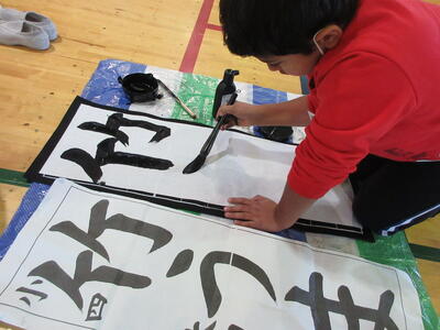 本日も書きぞめ競書会が体育館にておこなわれました。