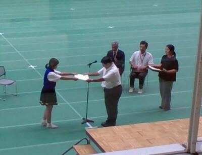 *写真は、リハーサルの様子です。閉会式では、部長が代表して表彰状をいただきました。