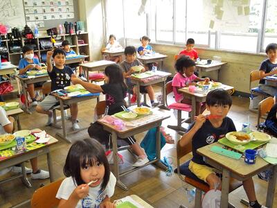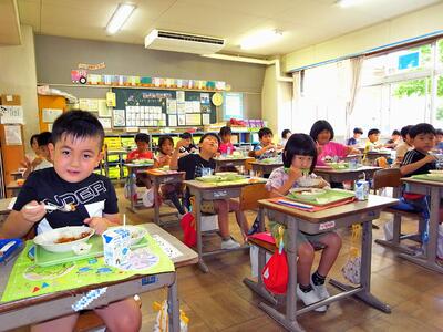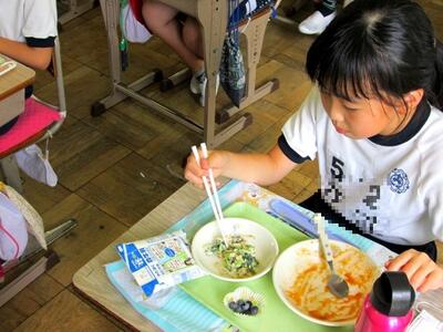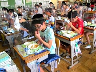 給食が開始されました。感染防止対策しながらの給食にも慣れ、スムーズなスタートになりました。
