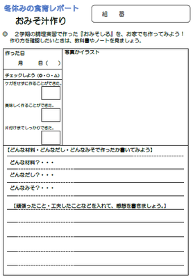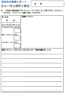 冬休みの宿題として、食育レポートにチャレンジしましょう!