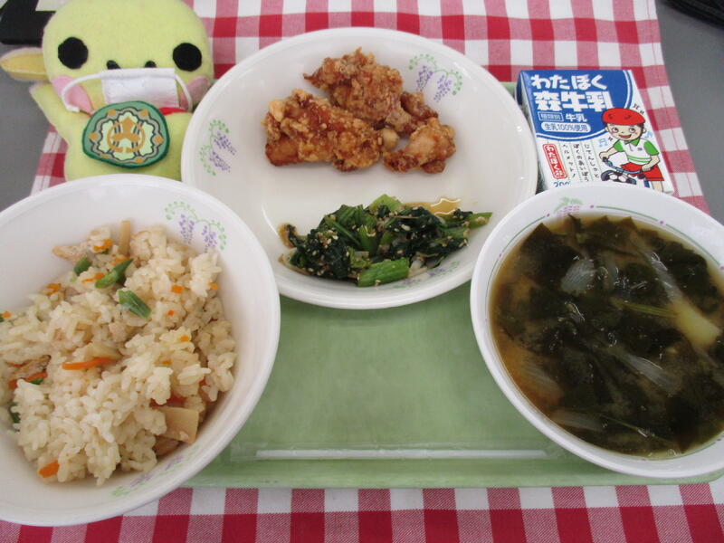 旬のたけのこを使った「たけのこご飯」と、新じゃがを使った「新じゃがのみそ汁」です。