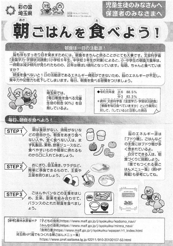 本日、全校のみなさんに「朝ごはんを食べよう!」という手紙を配りました。