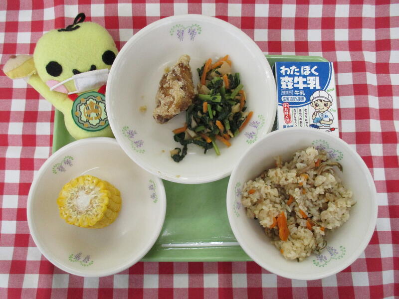 ※とうもろこしは、3年生とひまわり学級の子たちが皮むきをしてくれました。