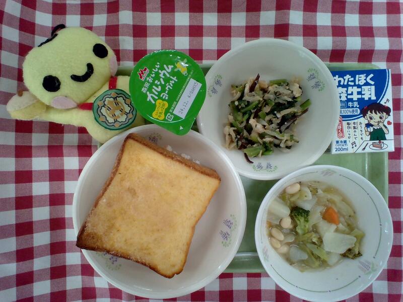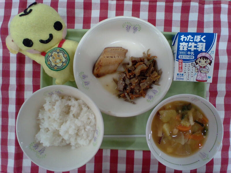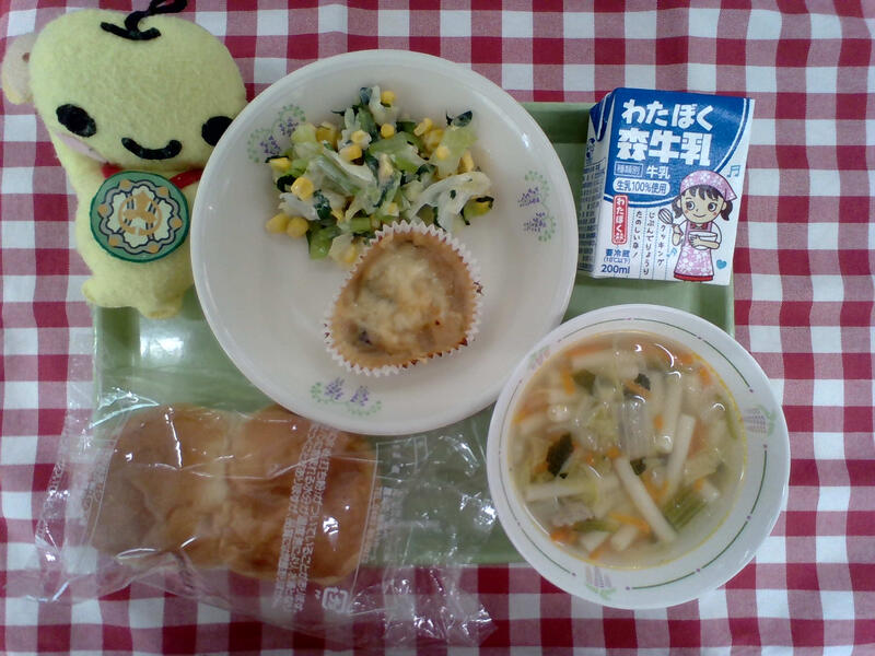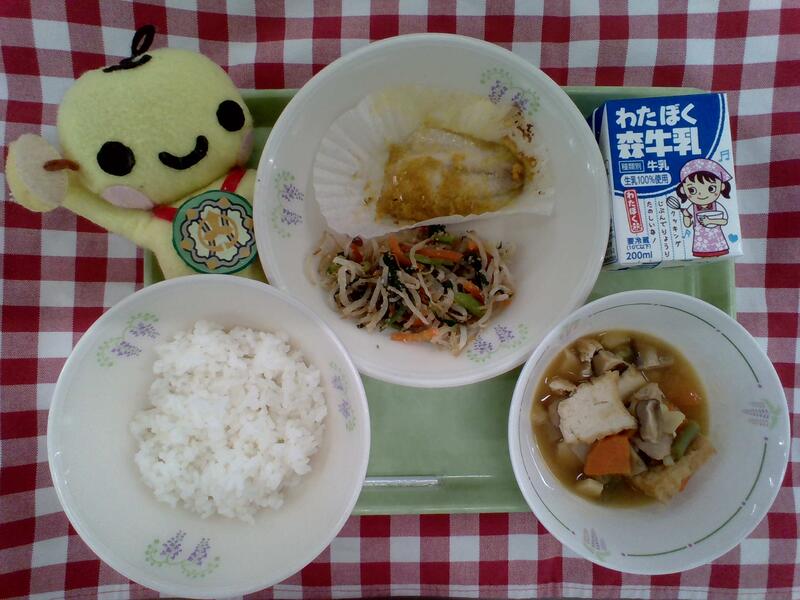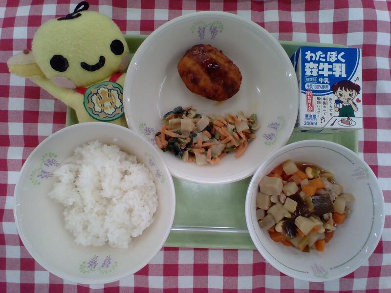 ★今日の給食は、図書館リストランテ給食です。『ぎょうれつのできるレストラン』より、もりのきのこと出会ったホワイトソースたっぷりのほくほくポテトグラタンを作りました。