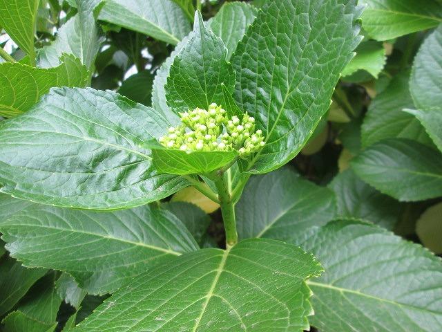 中庭の「あじさい」は、たくさんのつぼみをつけていました。