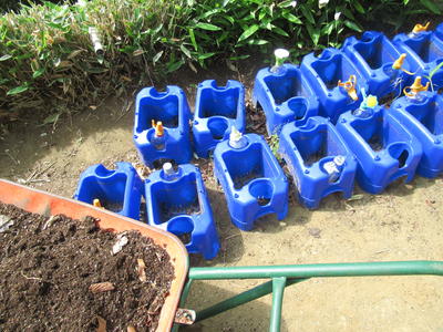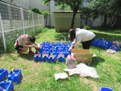 学校では理科の学習でとり組むホウセンカとひまわりをそだてるじゅんびをしています。