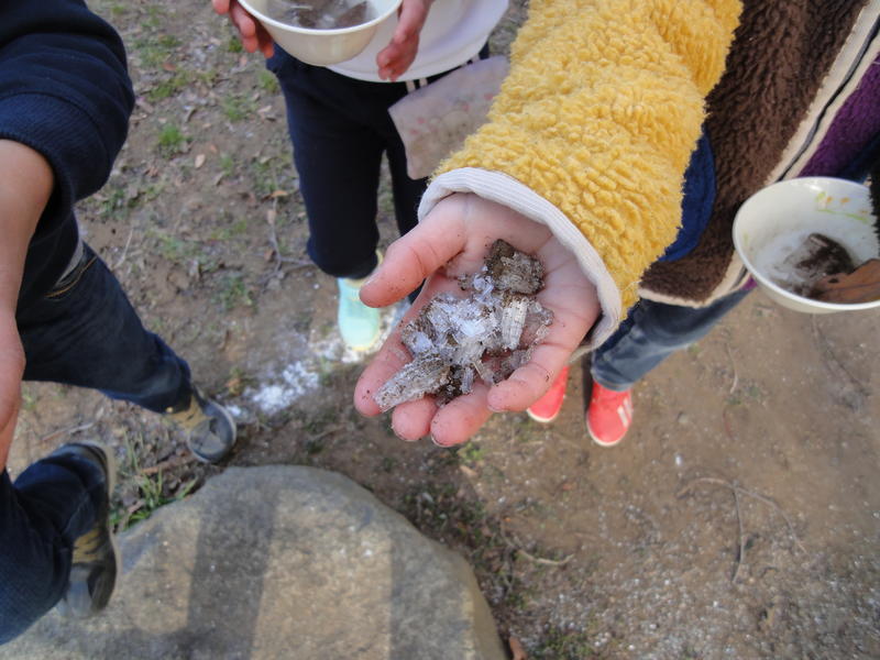 1年生生活科で作った氷も見事に凍りました。子供たちも大喜びです。