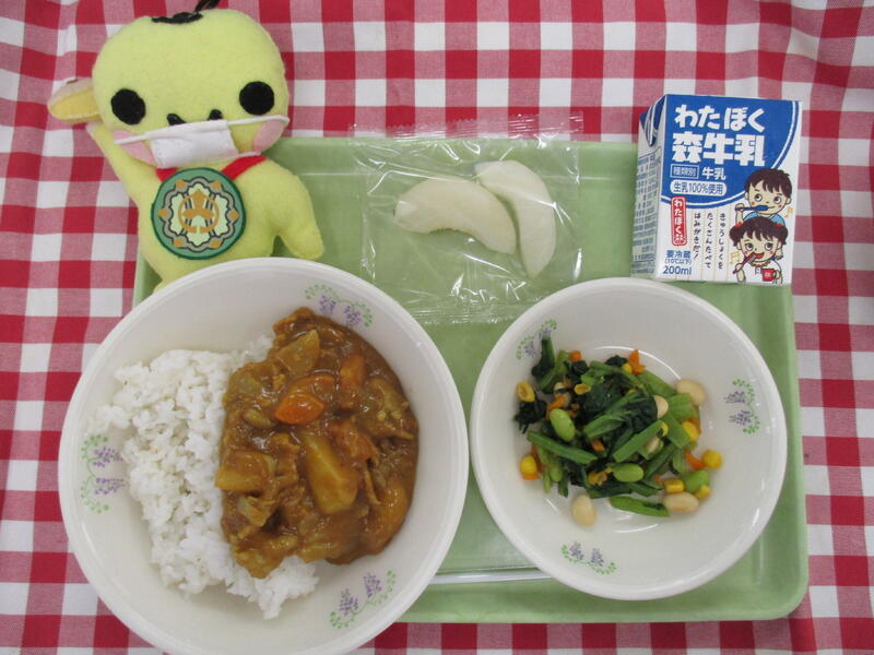 分散登校中は、全児童が同じメニューを食べられるように、2日間同じ献立を提供しています。