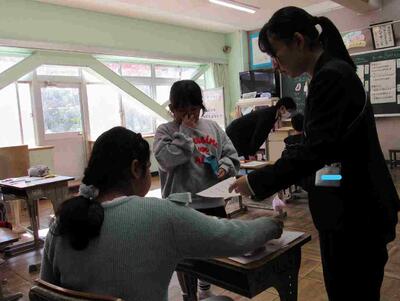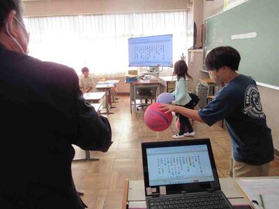 体育の授業を終えたばかりの6年生たちが、岩谷市長さんを呼び止めました。