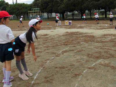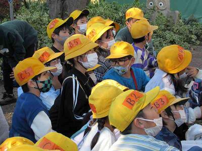 だれもしゃべることなく、1・2年生たちが集合し、整列を終えています。