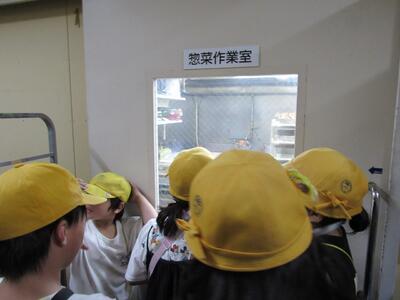ろう下側の入り口から、さらに3人の2年生が入って来て、6年生を応援です。
