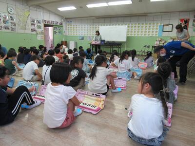 3階の音楽室からきれいなリコーダーの音色が聞こえてきます。