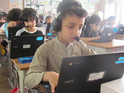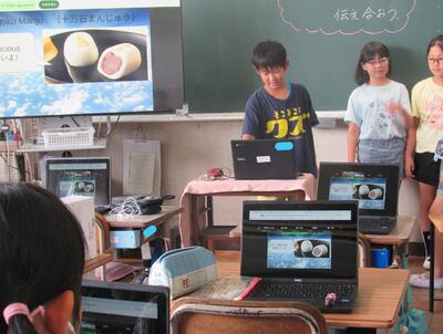 6年生の英語は、世界の国々のあいさつや有名なものについて調べて紹介し合うようです。