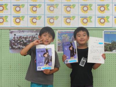 最後は、初めての表彰状にニッコリの1年生2人です。