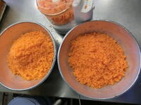 給食調理員さんが、朝から張り切って型抜きしてくれています。