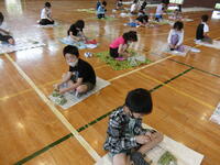 2年生が全校児童分の、グリンピースのさやむきをしてくれました。