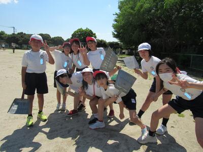 ◆5年生が、田植えを終えて、満足げな表情ですよ。