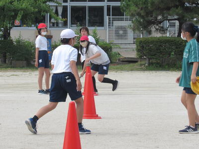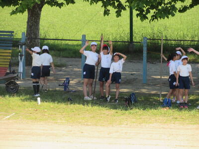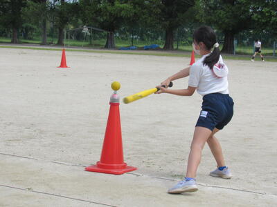 ◆6年生の体育は、ベースボール型ゲームである「ティーボール」を楽しんでいますよ。