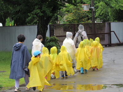 ◆第6保育所の皆さんが、本校の階段を使って避難訓練をしています。