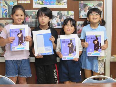 ◆続いて、自主学習ノートを終えた子供たちの表彰です。