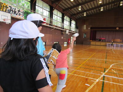 少しずつボールの投げ方がのコツが身につき、二人とも距離が伸びてきましたね。