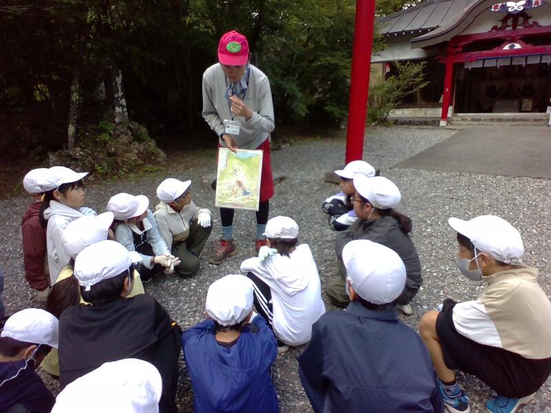 河口湖フィールドセンターでは、ガイドの方にご協力いただき、火山が噴火して出来た穴をくぐったり、キーホルダー作りに取り組んだりしました。