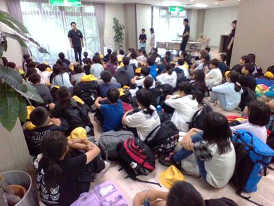 5年生、林間学校2日目です。閉校式では、旅館の方々に感謝の気持ちを伝えました。