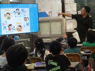 3年生が保健学習「せいけつな体」について学校薬剤師の宮田先生と学びました。