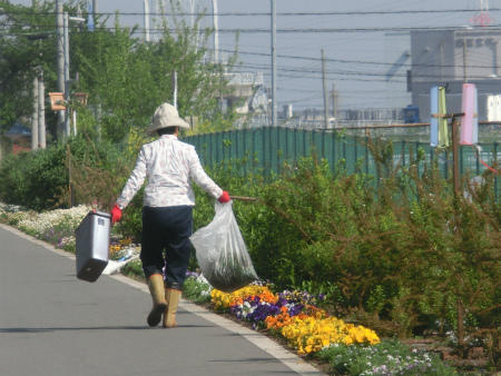 学校応援団・ガーデニングボランティアの方が倉松川沿いの「モーモーガーデン」の