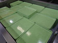 食器、食缶、盛り付け具など、一つ一つ確認しながら磨いて洗いました。給食室の中もきれいに、お掃除をしました。トレーが新しくなり、ぴかぴかです。