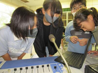 1組・2組の委員長が放送原稿を作って、全校児童にウェルカムボードについてお知らせします。