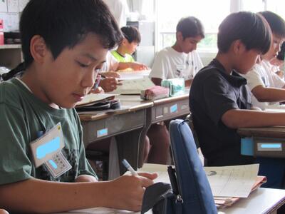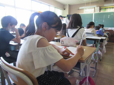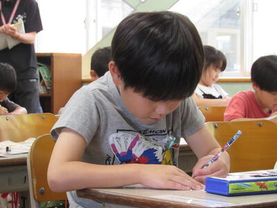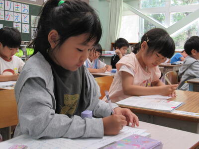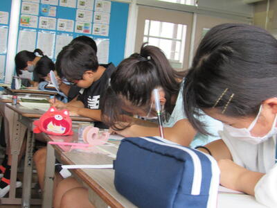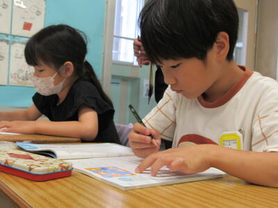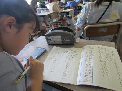 となりの教室の中も、集中して硬筆に取組んでいて、素晴らしいです。