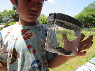 「ダンゴムシを捕まえたよ。」 「すごいね。」